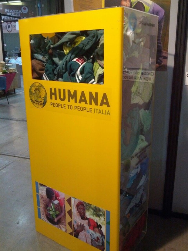 HUMANA è impegnata tutti i giorni, con trasparenza ed efficienza, nella gestione della raccolta abiti in 46 province italiane: in occasione delle Fiera, a emblema della tracciabilità della filiera dell’associazione, il contenitore per la raccolta abiti sarà trasparente. Troppo spesso, infatti, l’enorme potenziale di questo settore è messo in discussione dall’attività di operatori poco trasparenti e da una legislazione poco chiara e incompleta: ecco perché è importante scegliere consapevolmente a chi donare gli abiti che non si indossano più.